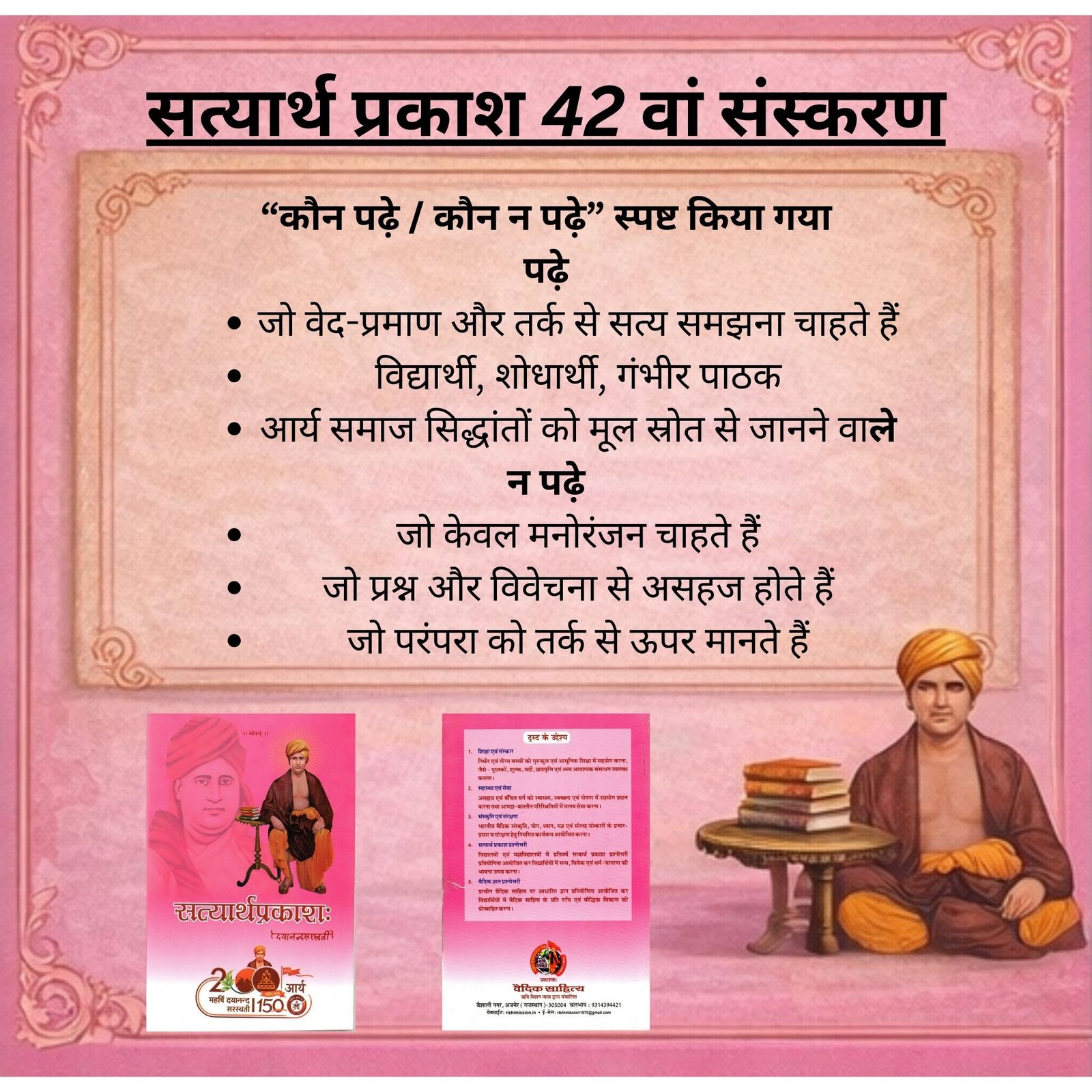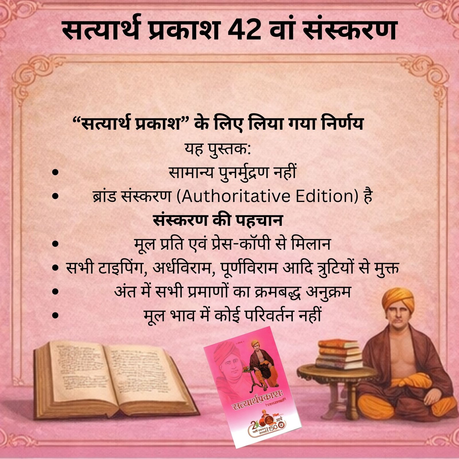 सत्यार्थ प्रकाश 42वाँ संस्करण (शुद्ध, संशोधित एवं प्रामाणिक संस्करण प्रमाण-अनुक्रम सहित मूल प्रति एवं प्रेस-कॉपी से मिलान सहित